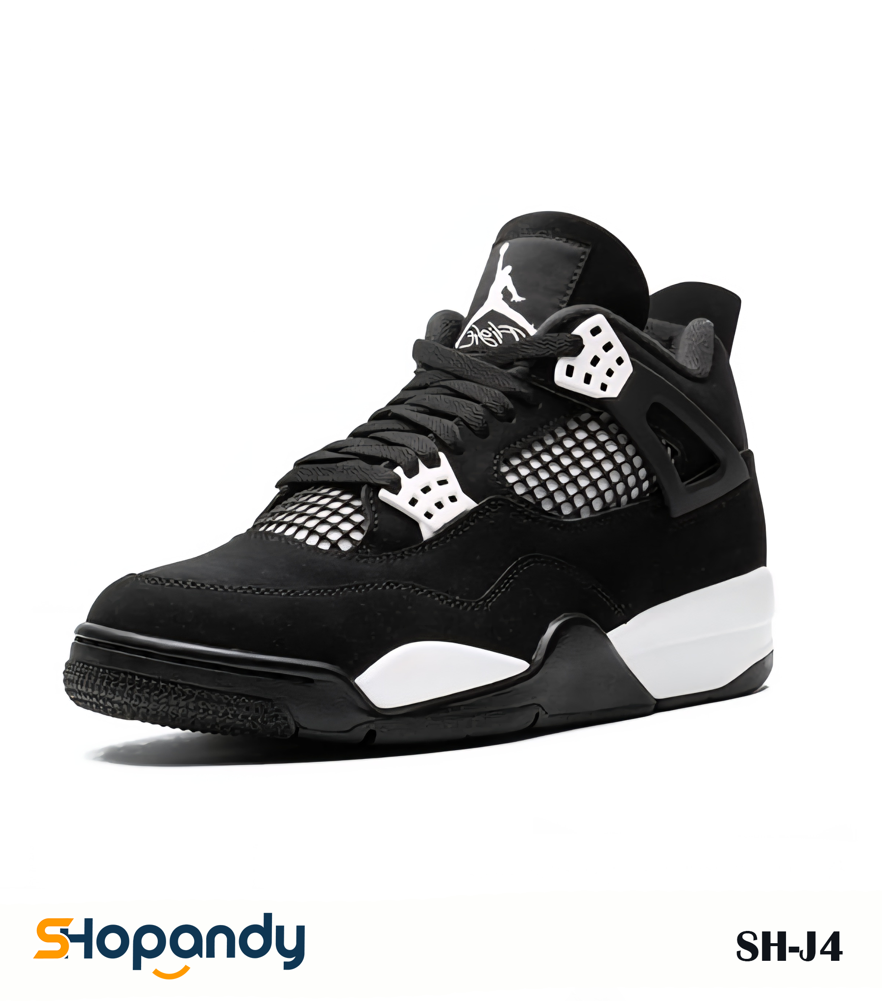 يأتي هذا الإصدار بتصميم أيقوني يجمع بين القوة والأناقة، حيث يعتمد على قاعدة سوداء فاخرة مع تفاصيل باللون الأبيض تمنح الحذاء تباينًا لافتًا. يتميز بتصميم Jordan 4 الكلاسيكي مع الشبك الجانبي، والوسادة الهوائية Air لراحة أكبر، ونعل يمنح ثبات رائع سواء في الاستخدام اليومي أو الإطلالات الرياضية العصرية.